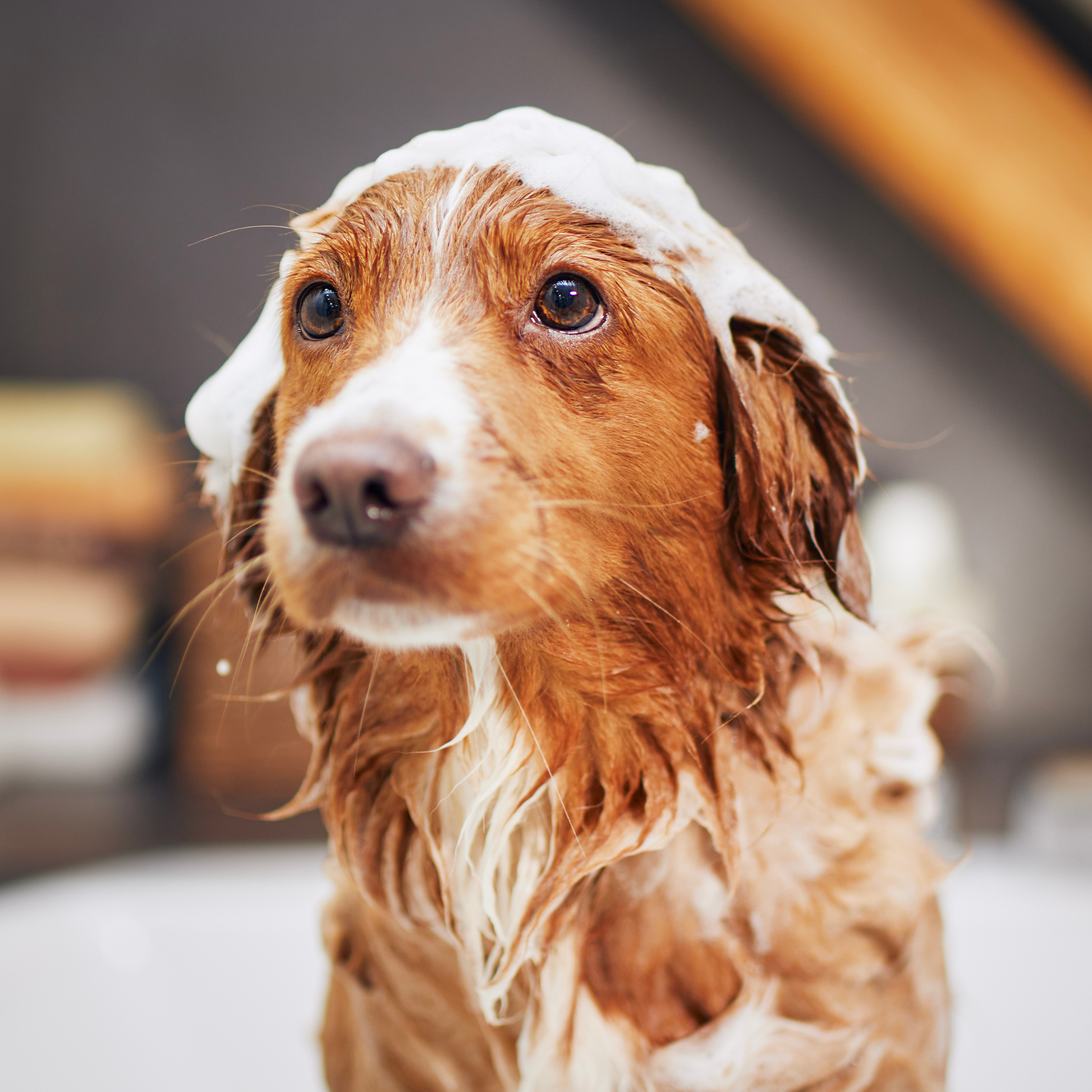 1) Applicare il prodotto diluito (da 1 a 2 cucchiai da cucina per ogni mezzo litro d’acqua) sul pelo bagnato, massaggiando con cura fino ad ottenere una schiuma morbida e fine.
